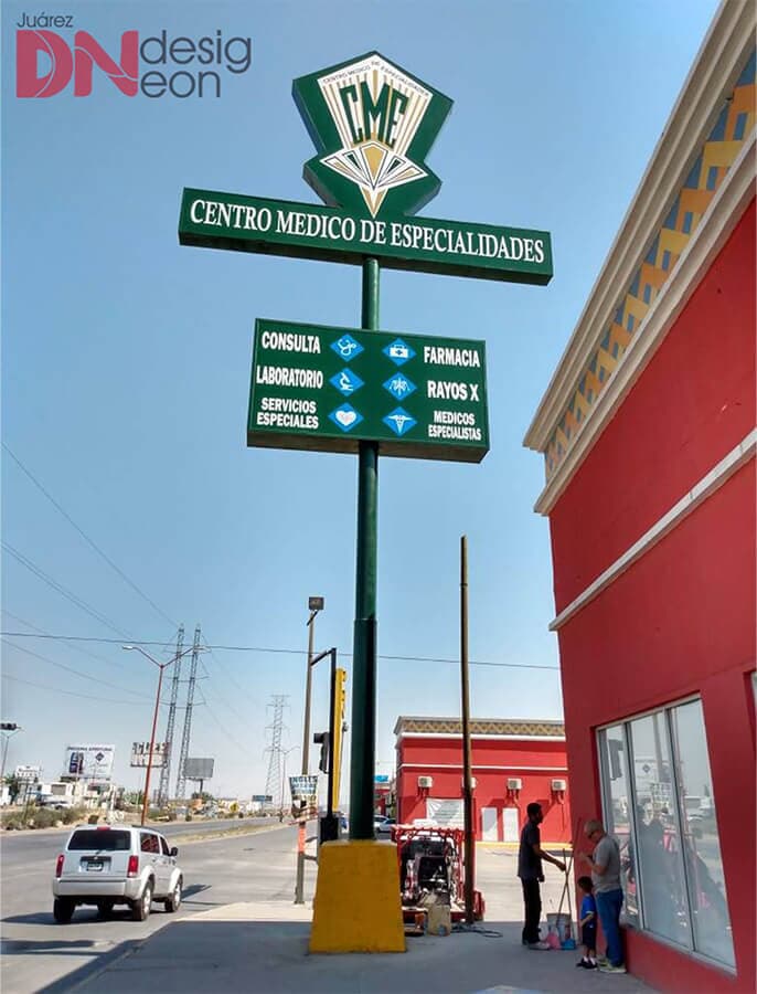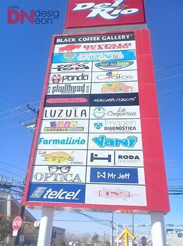 anuncios luminosos como tipo tótem, letras individuales, unipolares, bipolares, gabinetes, etc.