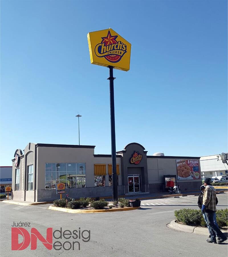 Churchs chicken: Reubicación y mantenimiento de anuncio luminoso tipo unipolar de nuestro cliente Churchs Chicken.