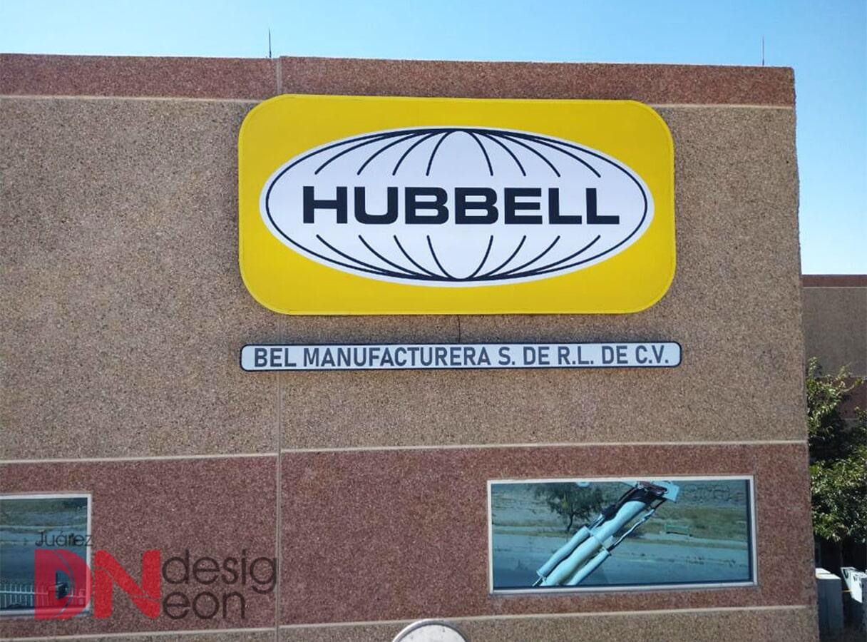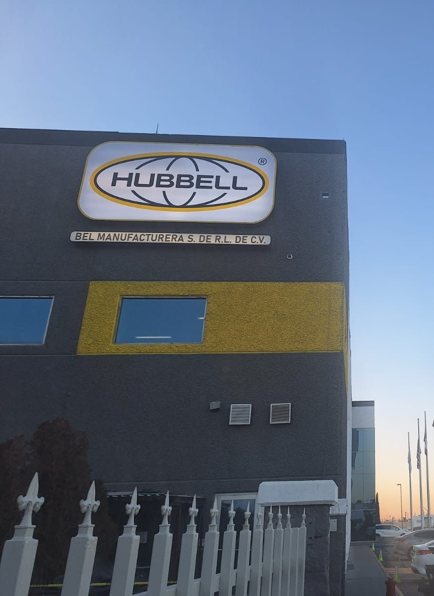 Hubbell: Anuncio tipo gabinete de nuestro cliente HUBBELL BEL MANUFACTURERA S. DE R.L. DE C.V. instalado en la calle Santiago Troncoso.