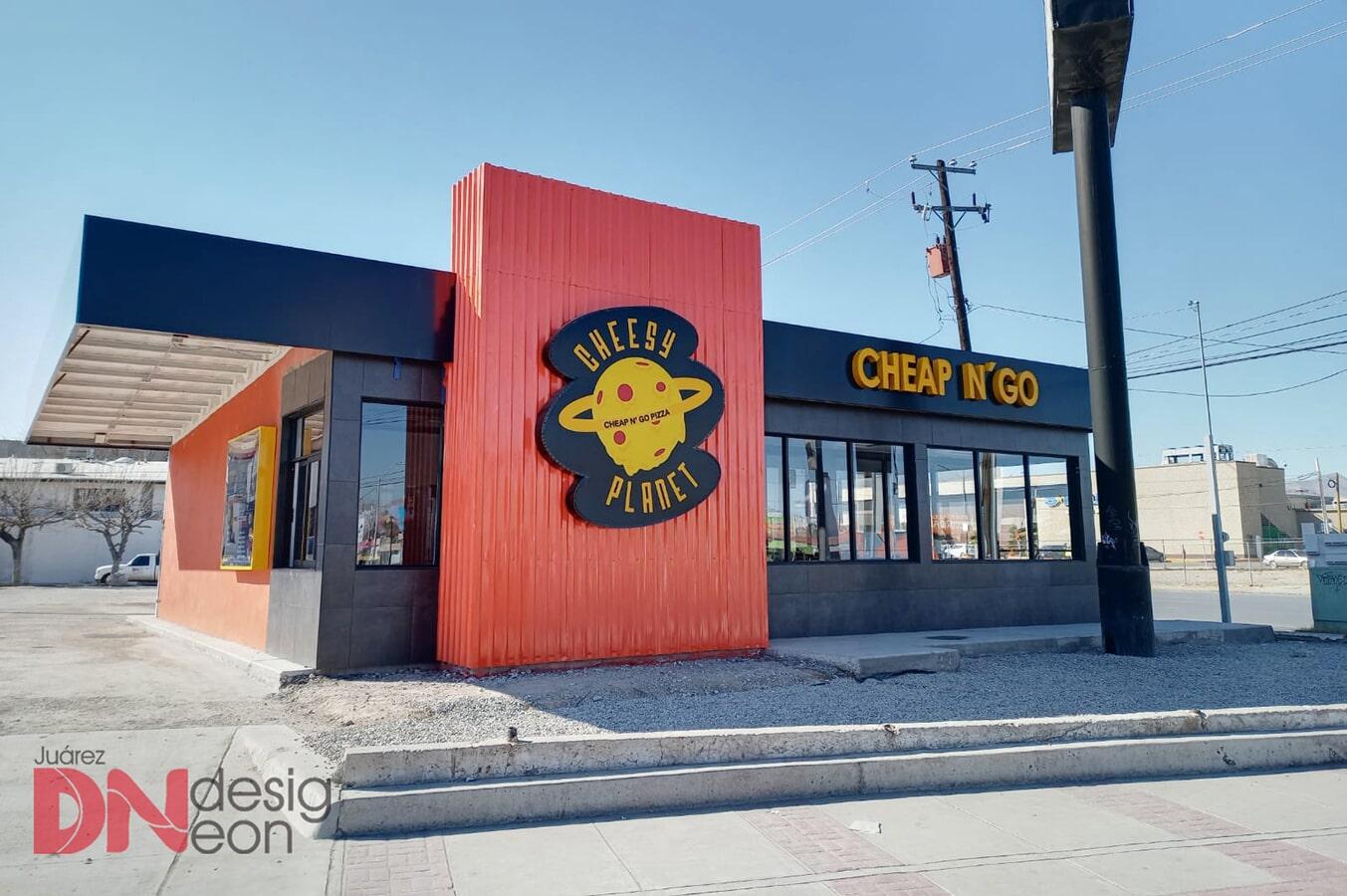 CHEAP N GO: Anuncio tipo letras individuales con emblema “CHEAP N GO” instalado en la López Mateos y Ejército Nacional.