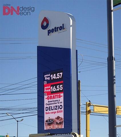 Petrol: En proceso de finalización de fabricación e instalación de Tótem para cliente Petrol, remodelación de Sucursal Av. Gómez Morin.
