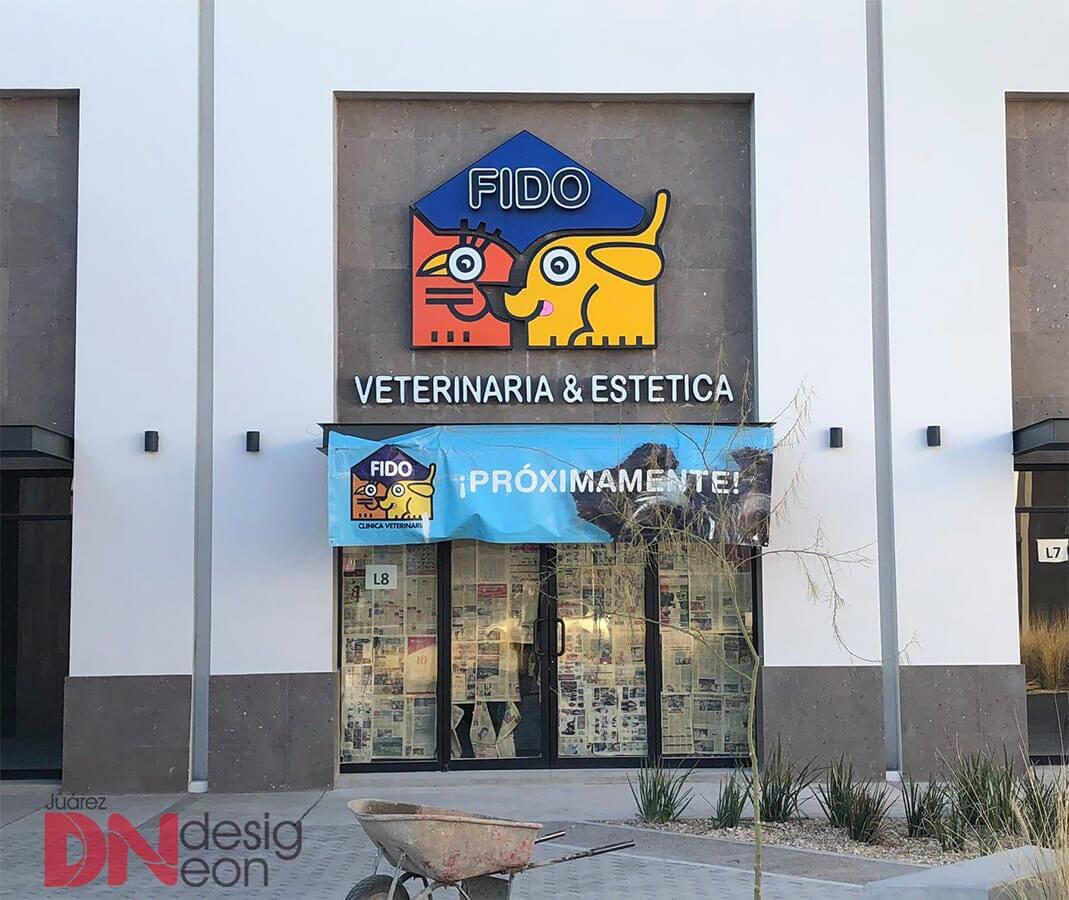 FIDO: Fabricación e instalación de letras para cliente Fido Veterinaria & Estética en nueva Plaza Vendome.