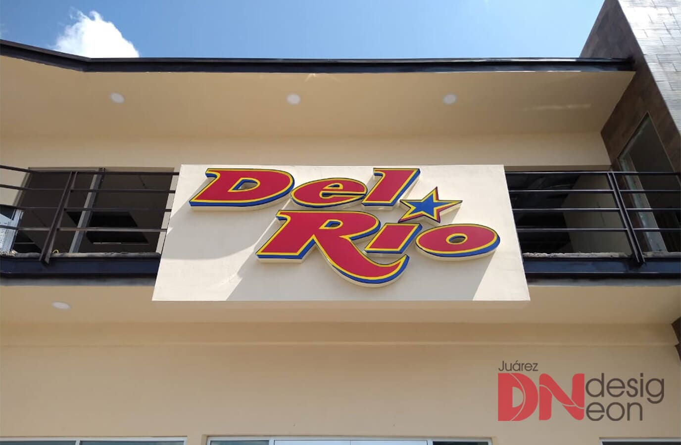 Del Río; Fabricación e instalación de un anuncio luminoso tipo letras individuales para la suc. Del Río #286 Altozano, en la cd. de Chihuahua.