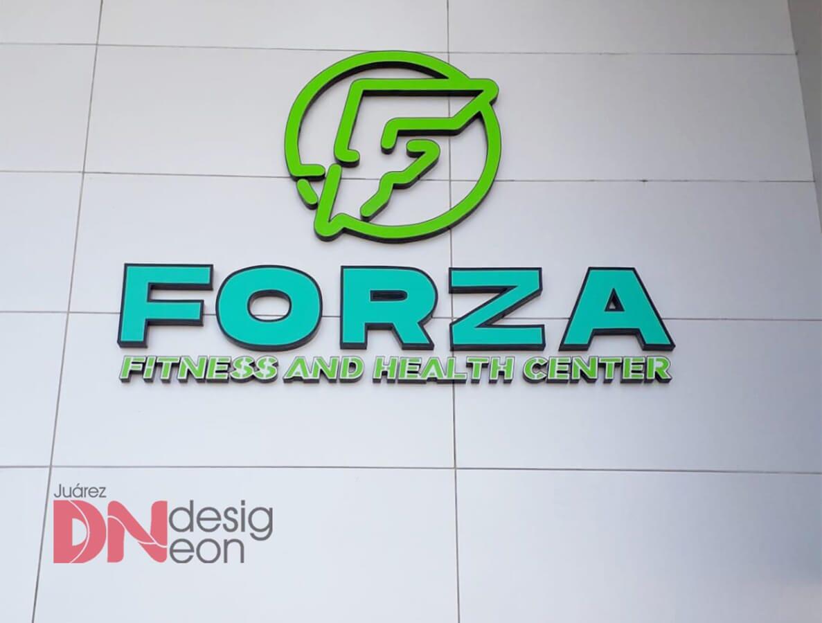 Forza; Anuncio tipo letras individuales de nuestro cliente FORZA FITNESS AND HEALTH CENTER instalado en Plaza Soriana San Lorenzo.