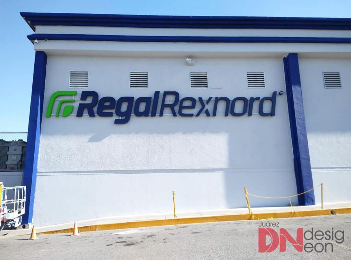 REGAL REXNORD: Anuncio tipo letras individuales de nuestro cliente REGAL REXNORD instaladas en el edificio ubicado en la carretera Panamericana y blvd. Zaragoza.